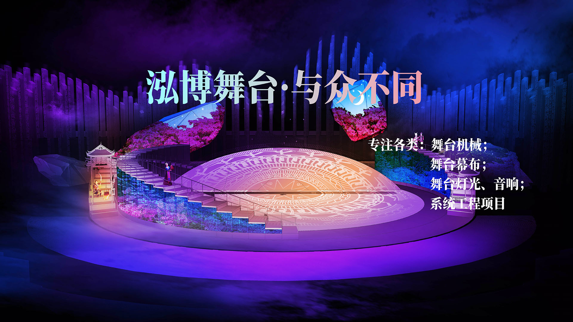 江蘇泓博舞臺(tái)設(shè)備科技有限公司  江蘇泓博舞臺(tái)設(shè)備科技有限公司坐落于美麗的揚(yáng)子江畔——泰州市。公司生產(chǎn)基地設(shè)在國家中藥養(yǎng)生小鎮(zhèn)——大泗,距離泰州高速出口大泗出口1.5公里,交通便捷。泓博公司是國內(nèi)較早從事舞臺(tái)機(jī)械設(shè)計(jì)制造安裝的專業(yè)公司。  泓博以發(fā)展文化產(chǎn)業(yè)為已任,多年來以求新務(wù)實(shí)的步伐走出一條技術(shù)創(chuàng)新、產(chǎn)品創(chuàng)新、管理創(chuàng)新、品牌創(chuàng)新的發(fā)展足跡,在企業(yè)轉(zhuǎn)型升級(jí)的道路上向設(shè)計(jì)研發(fā),生產(chǎn)制造、安裝調(diào)試及售后服務(wù)一條…